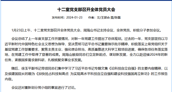 2024年1月份党支部召开全体党员大会