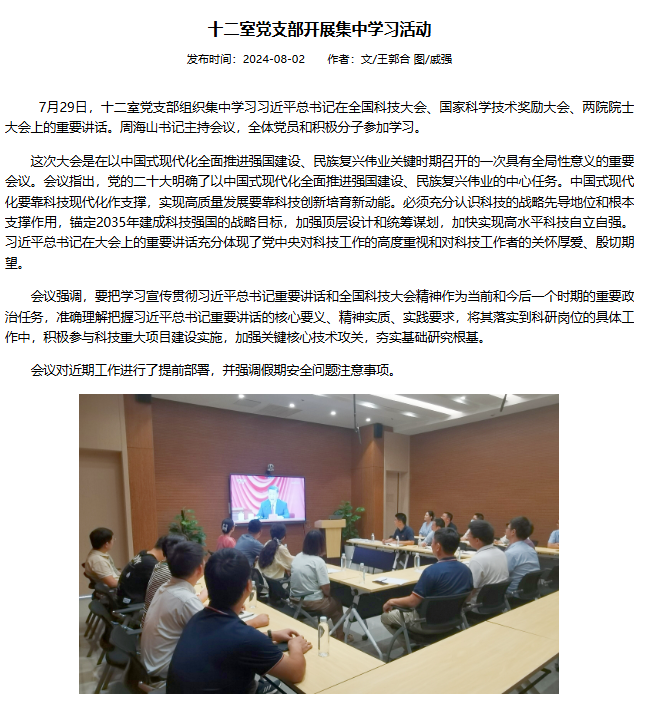 2024年8月份党支部开展集中学习活动